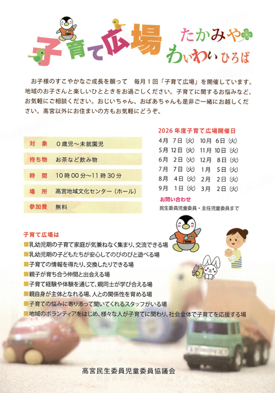 | 4/7 (火) | 子育て広場 | 高宮地域文化センター |