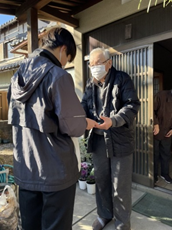 高齢者宅への訪問時に、生徒さんたちは、まず、自己紹介をして“送ろう作戦”の主旨を説明し、 時候の声掛けです「風邪をひかないように注意して下さい」「火の用心をお願いします」 「押し売りに注意して下さいね」など、この時期、お互いに気を付けましょうと声掛けをする話題はたくさんあります。 また、訪問先のおじいさん、おばあさんから「勉強を頑張って」「身体に気を付け て」と、生徒さんたちが、逆に、励まされるときもあります。更に、「去年も、そ の前も来てもらった。毎年、楽しみにしている」「カードは大事に残している」と 感謝感激の声もあります。高齢者の皆さんにとって、訪問する生徒さんも、カー ドの中味も変わりますので、非常に喜んでおられます。