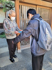 彦根西中学校の生徒さんたちが、生徒会活動として2014年(平成26年)から、 取り組んでくれています“心のこもったクリスマスカードを送ろう作戦”(以下“送ろう作戦”)に、 西中学校区内の城西一民児協<委員数12人>、城西二民児協<委員数6人>、 城北民児協<委員数9人>の民生委員が、毎年、同行させてもらっています。 民生委員は、担当地域の高齢者宅をご案内する役目です。道中、生徒さんたちと、地域の特色を話したり、 中学校生活のお話を聞いたりして、遠い昔を振り返る懐かしさもあります。◇日 時 令和3年12月23日(木)午後2時から