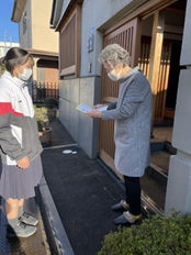 訪問を終えて、生徒さんたちから「カードを渡した時に、嬉しそうな表情で受け 取ってもらい、この活動に参加して良かった」「みなさん元気にされていてホット しました」「カードを渡すことで地域に貢献できたので嬉しかった」などの感想を 聞かせてもらいました。