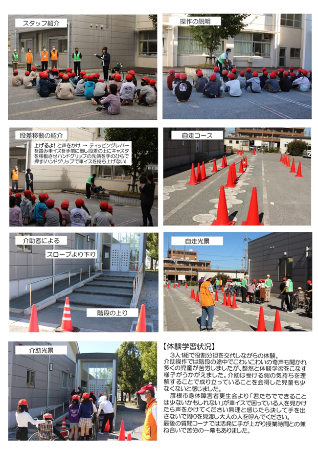 福祉授業の一環として、小学4年生児童を対象にした車イス体験学習が行われ、学区の民生委員児童委員も出席し、 体験学習のお手伝いをいたしました。体験学習内容は次の通りでした。