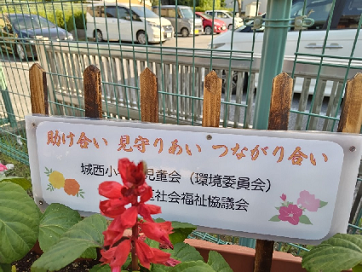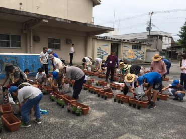 社会福祉法第107条の規定に基づいて、市町村が策定する「地域福祉計画」と併行して、城西小学校区でも「城西学区第2次住民福祉活動計画(私の城下町城西プラン)」を策定しました。 「城西プラン計画」のひとつである“花づくりを通した交流の場づくり”を目指す活動として、7月3日、城西小学校で育成いただいた5種類の苗を、小学生とコラボして、育苗ポットからプランターへ移植をしました。 その後、7月18日、軽トラック、自動車、リヤカー等で、城西学区内の各所にプランターを移動させました。これからの、水やりなどの生育面のお手伝いを、地域の皆さんにお願いしました。