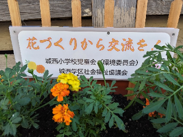 城西小学校区でも「城西学区第2次住民福祉活動計画(私の城下町城西プラン)」 を策定しました。「城西プラン計画」で、具体的な取り組みのひとつとして“花づくりを通した交流の場づくり”を計画しました。 今般、城西小学校で育成いただいた5種類の苗を、小学生とコラボして、育苗ポットからプランターへ移植をしました。