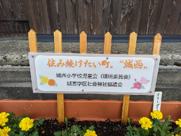 プランターの花も、生育していきます。プランターの花が、地域の皆さんの目に留まり、この「城西プラン計画」に沿った活動を理解してもらい、また、共感してもらうメッセージボードをプランターに立てました。
