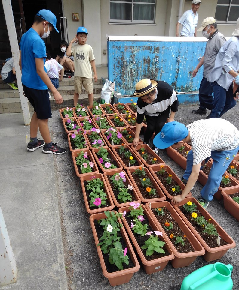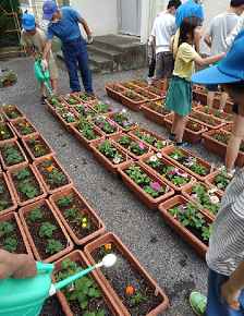 7月16日(火)午前、本活動の目的である「花づくりから、地域での交流を広めよう」を目指して、各地域にプランターの配置を予定しています。