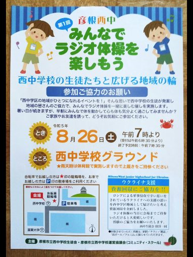 彦根市西中学校にて「第2回 みんなでラジオ体操を楽しもう」が開催されました。