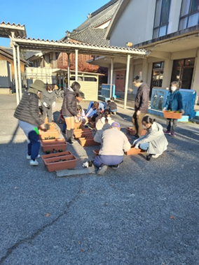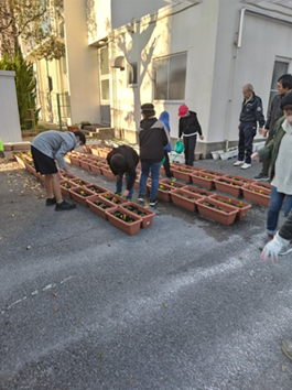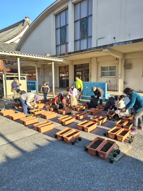 一週間後の12月11日(月)に、城西小学校区内の19か所にプランターを移動させる予定です。 寒空のもと、プランターの苗が育ち、道行く人々の目にとまる花を咲かせてくれることを願っています。