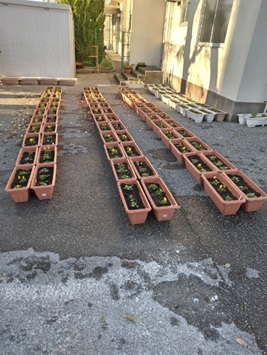 一週間後の12月11日(月)に、城西小学校区内の19か所にプランターを移動させる予定です。 寒空のもと、プランターの苗が育ち、道行く人々の目にとまる花を咲かせてくれることを願っています。