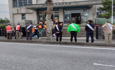 小学校正門前で学校の先生方・各種団体の皆さんと、登校してくる子ども達に「おはようございます」と元気よく声掛けをします。 当日は、新学期最初の登校日で少し緊張気味でしたが、上級生の「おはようございます!」に合わせて新一年生も大きな声であいさつが出来ていました。