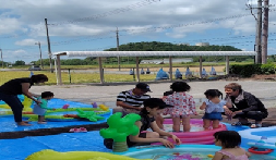 当日は29度もありましたが、日陰にプールを設置し、休憩・水分補給の時間を設ける等、熱中症対策を行い、皆さんに楽しい時間を過ごしていただきました。