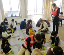 物づくりでは、新聞紙でタコ作りや牛乳パックとペットボトルのキャップを使い、カスタネットも作って遊びました。 約1時間半ではありましたが、親子一緒に楽しい時間をすごしました。