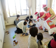 西畑先生による手遊び・パネルシアター・物あてっこゲームをしました。大きなバルーンが出てくると、 大喜び! 子供たちは大はしゃぎで遊びました。親子でクリスマスリースも作りました。 パパさんたちも細かな手作業に奮闘されていました。
