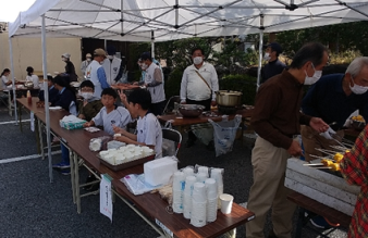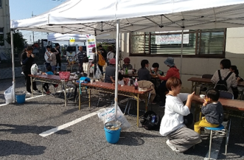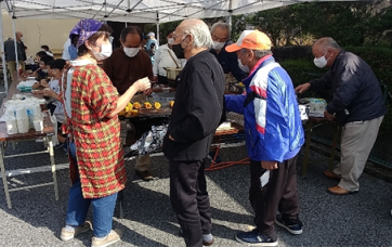 公民館の裏に設置したテントの中で、小学生の代表等と食品の販売協力を実施しました。