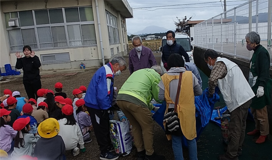 小学生といっしょになって、民生委員総出でチュウリップの球根植込み支援をしました。