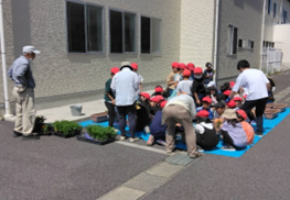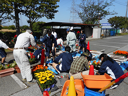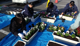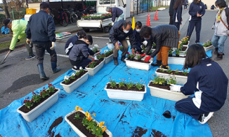 | ボランティアさんと生徒で 花の植込み |