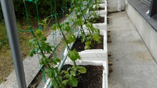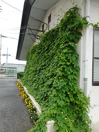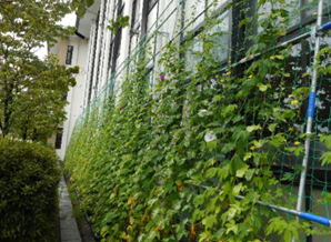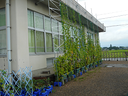 2.河瀬小学校で給食室とプールの間に緑のカーテン
