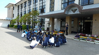 担当の先生からご挨拶と注意事項説明 花の苗植込み開始