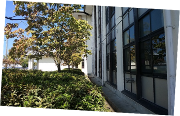 ゴーヤネットを撤去した校舎 プランターは一個一個掃除、次年度に備えます。