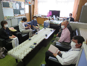 児童福祉部会委員(5名)と民児協会長が、令和3年6月7日(月)、金城小学校を訪問しました。 校長、教頭、教務主事の先生方と2年ぶりの話し合いの機会を持ちました。
