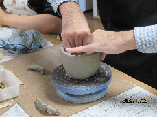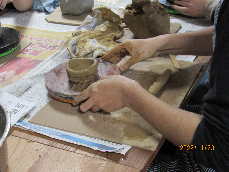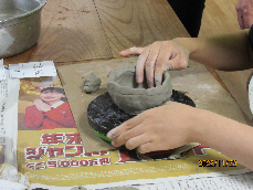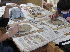 参加者は、板作りでお皿に挑戦する人、又、ひも作りでコップやお茶碗に挑戦する人、はにわに挑戦する人、 それぞれが世界に一つしかない自分の作品作りに一生懸命取り組んでいました。「結」スタッフの皆さん、 お手伝い有難う御座いました。