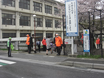 佐和山民児協では、佐和山小学校に入学される新1年生に対し、入学式登校時には「おめでとうございます」という言葉を掛け、お祝いの気持ちを伝えています。 当日は、朝から雨風が強く心配しましたが、入学式前には雨もあがり、明るい雰囲気が漂いました。