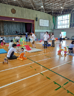 今回の子育てひろばは、参加者が多く集まり、楽しい声が響き渡っていました。インストラクターをお迎えし、親子でバランスボールを使った楽しい運動を楽しみました。 自由あそびの時間でも、保護者と一緒に笑顔で遊ぶ子どもたちの姿が見られ、とても良い雰囲気でした。皆さんの笑顔が輝く、素敵なひとときとなりました。