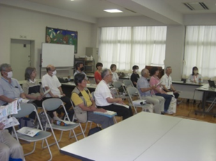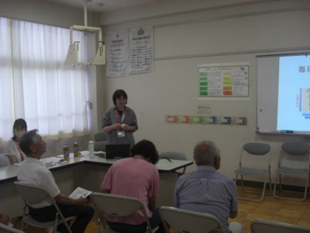 健康推進員は、赤ちゃんから高齢者までを対象に、生涯にわたる健康づくりを目指して地域に根ざしたボランティア活動をしています。 活動内容と受講者の募集について説明がありました。