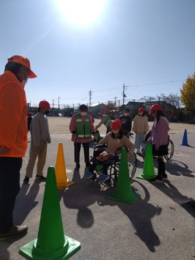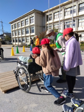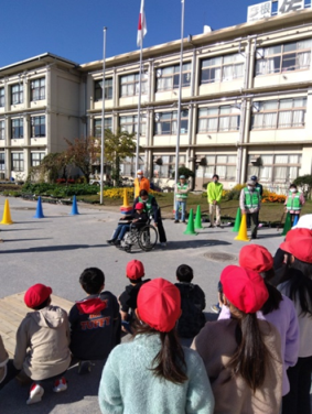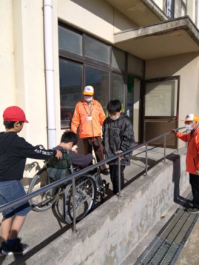 11月21日佐和山小学校4年生を対象とした車椅子体験学習に障害者福祉部会が中心となってボランティアとして参加しました。 彦根市身体障害者更生会のお手伝いと、スロープや段差を車椅子で操作する子どもたちが怪我をしないようにとサポートをしました。